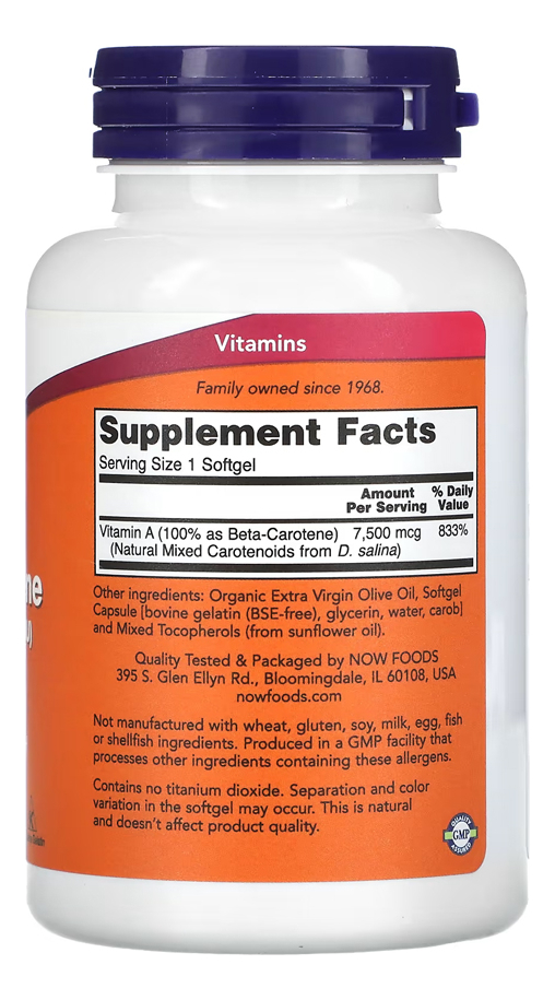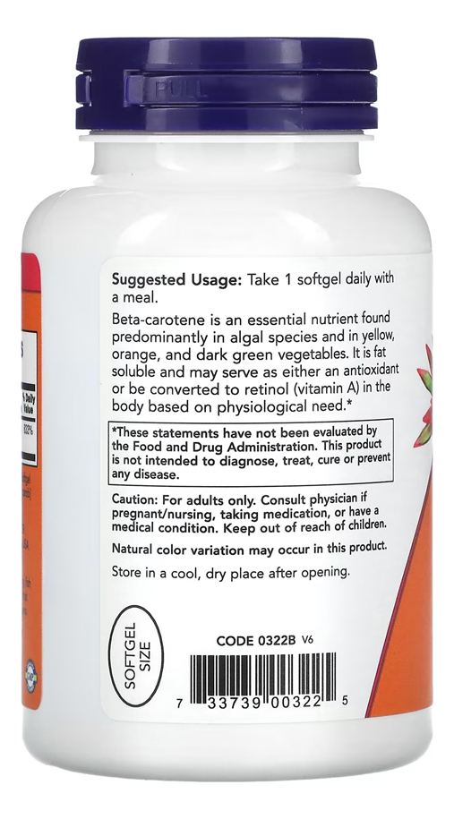Beta Caroteno 7.500mcg Now Foods 180 Soft + Porta Cápsulas