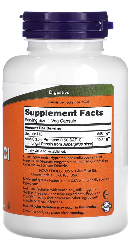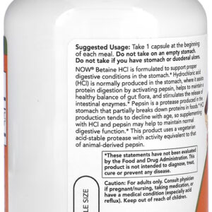 Betaína Hcl 648mg Now Foods Betaine Hcl 120 Veg Caps Eficiência Digestiva Energia Consistente Performance Otimizada – Importado