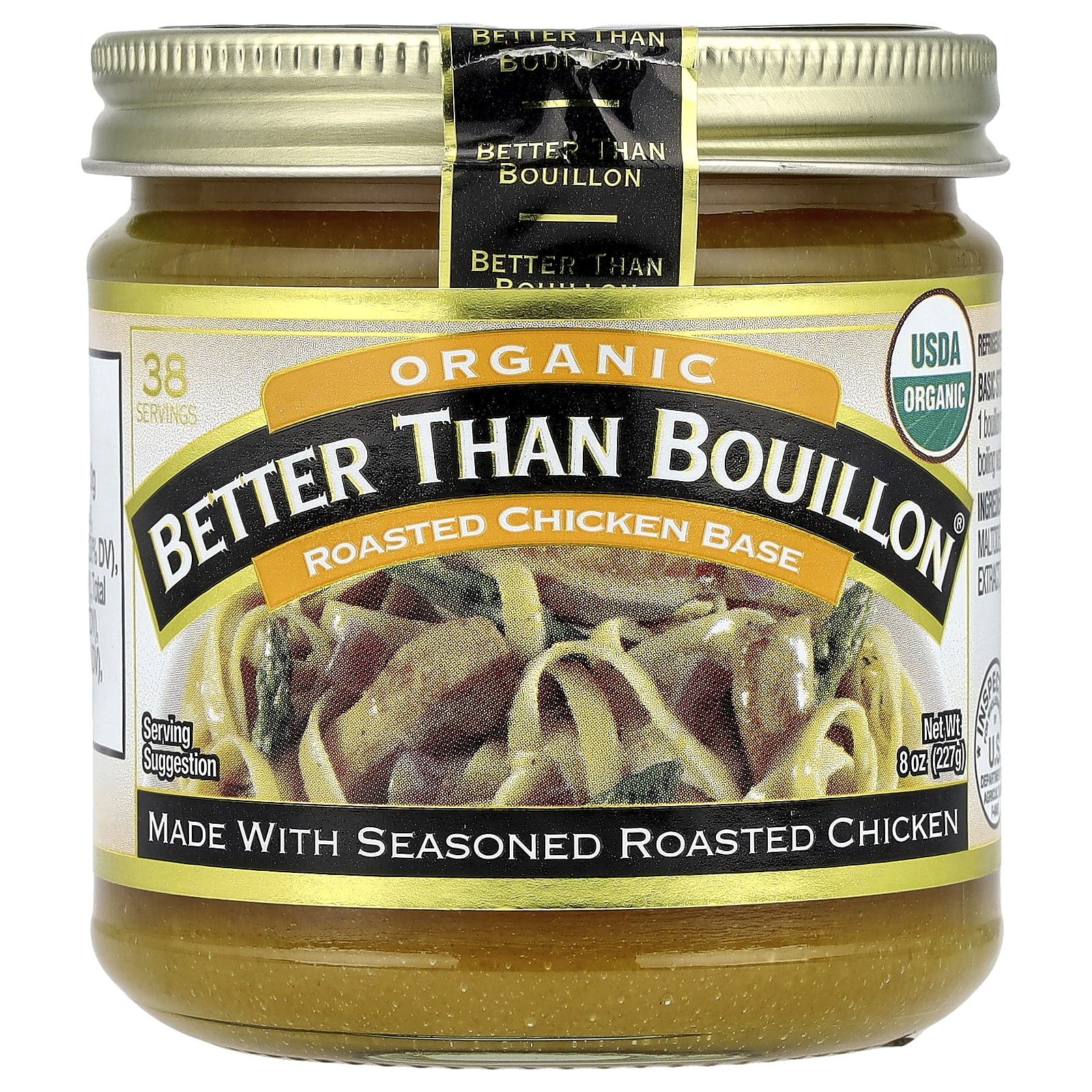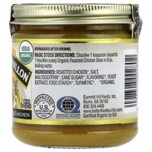 Instruções Básicas de Estoque: Dissolva 1 colher de chá (equivalente a 1 cubo de caldo) de Base de Frango Assado Orgânico em 8 oz de água fervente.