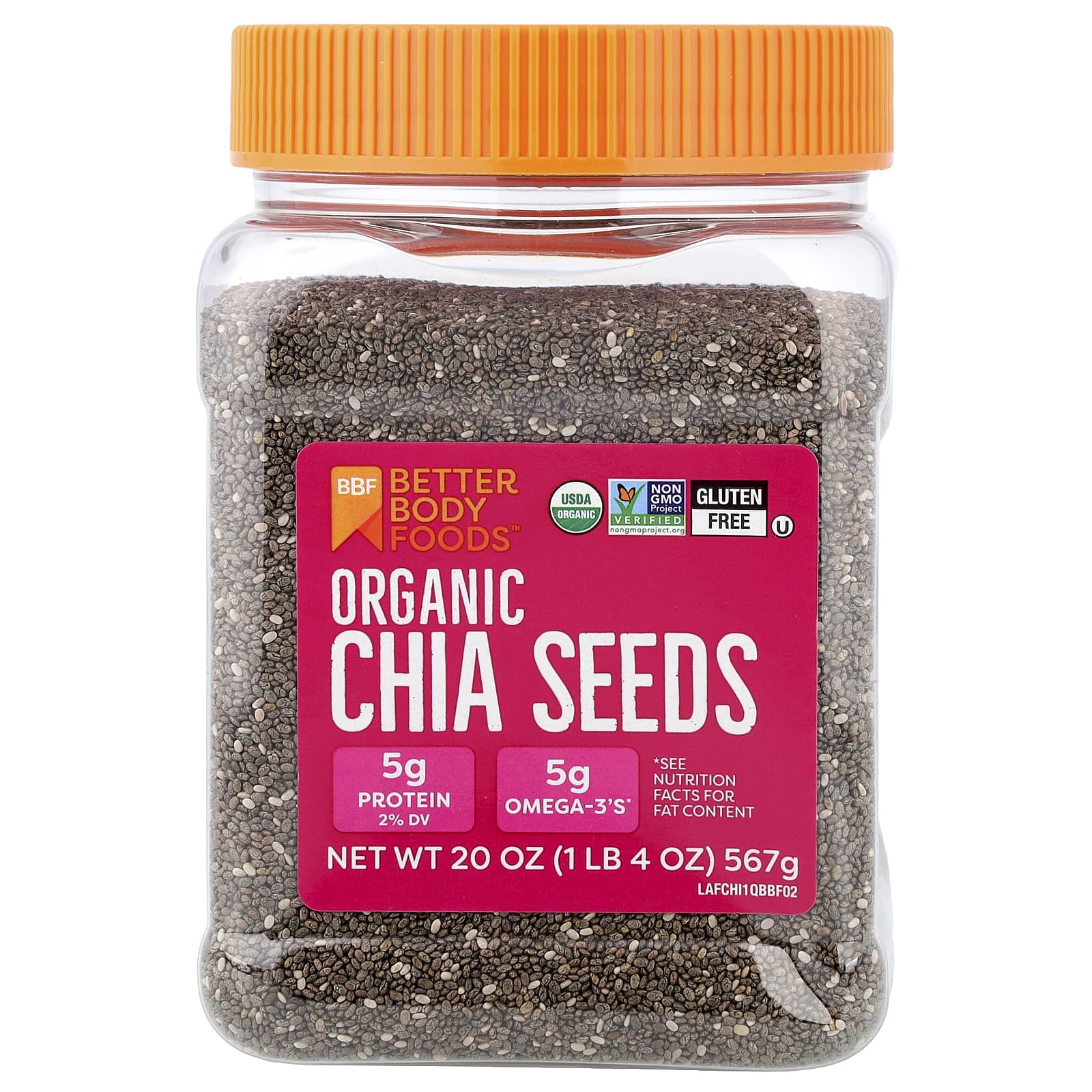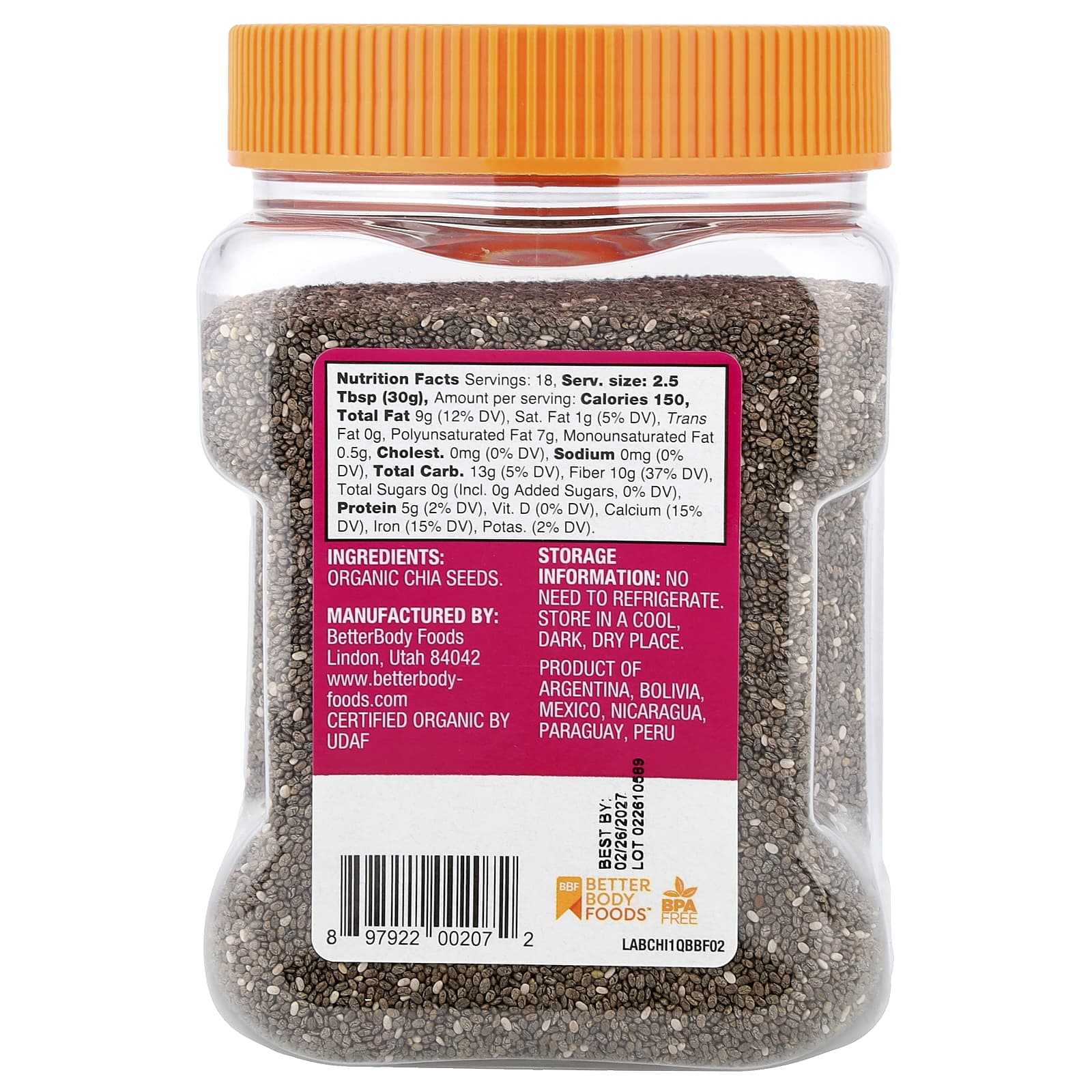 BetterBody Foods Sementes de Chia Orgânica 567 g (20 oz) – BetterBody Foods Alimentos Petiscos e lanches Castanhas e sementes Semente de Chia.