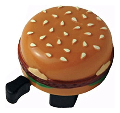 Chama grelhada, hambúrguer alimentado com capim, super molho, alface, queijo, picles, cebolas em um pão de semente de gergelim. Você gostaria de batatas fritas com isso? Supersized? Um sino que com certeza vai se destacar! Faz um grande presente para o entusiasta da bicicleta e crianças.