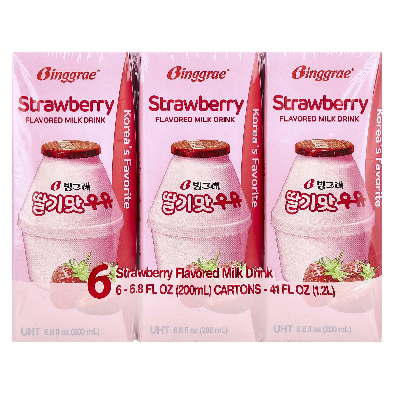 Binggrae Bebida Láctea com Sabor Morango 6 Caixas 200 ml (68 fl oz) Cada – Binggrae Alimentos Chás e bebidas.