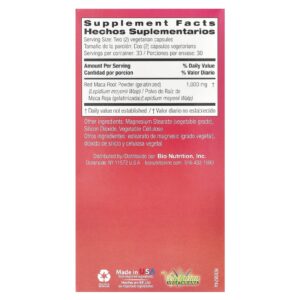 Bio Nutrition Maca-Peruana Vermelha Gelatinizada para Mulheres 60 Cápsulas Vegetarianas (500 mg por Cápsula) – Bio Nutrition Suplementos Herbs Maca Saúde da Mulher.
