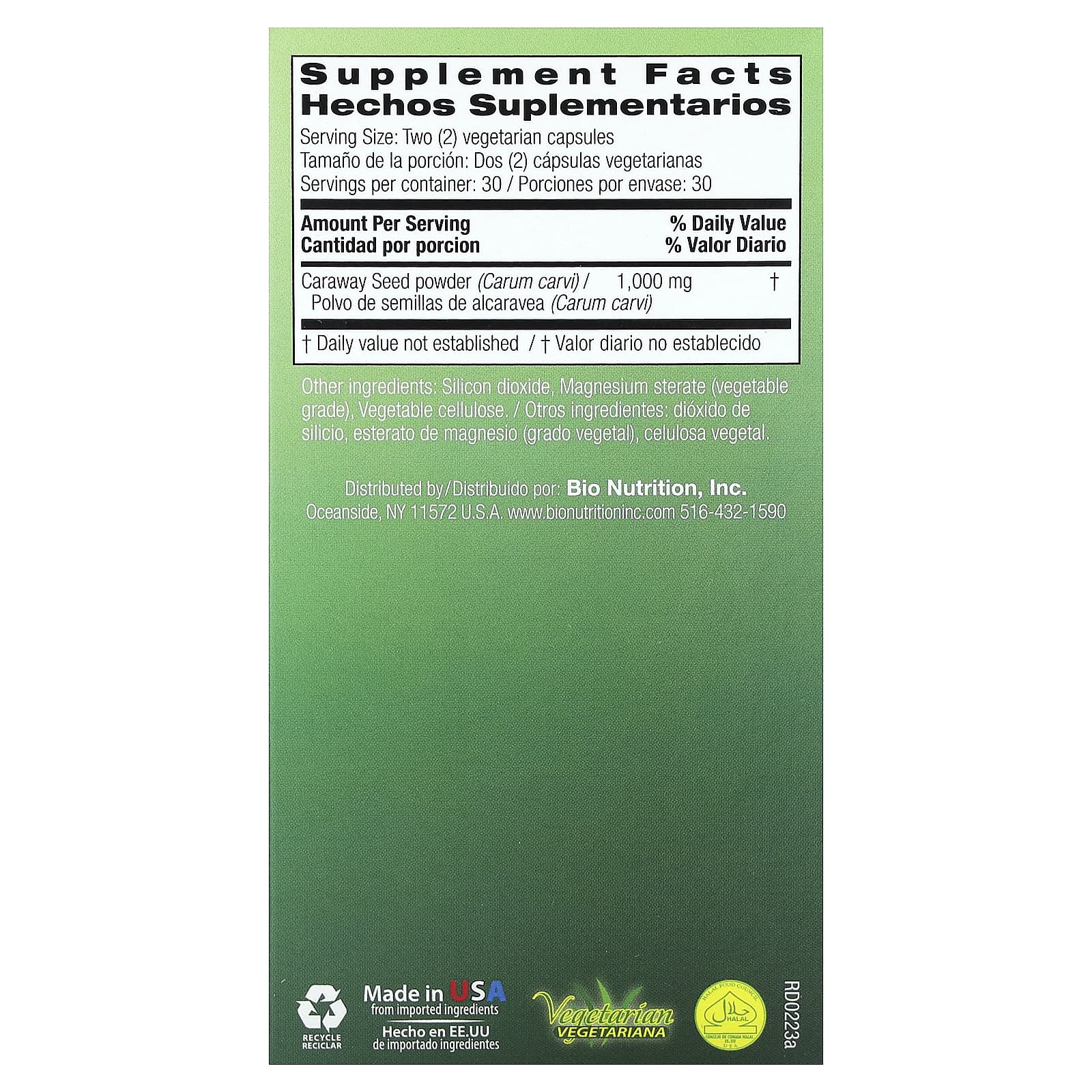 Bio Nutrition Semente de Alcaravia 60 Cápsulas Vegetarianas (500 mg por Cápsula) – Bio Nutrition Suplementos Saúde Intestinal.