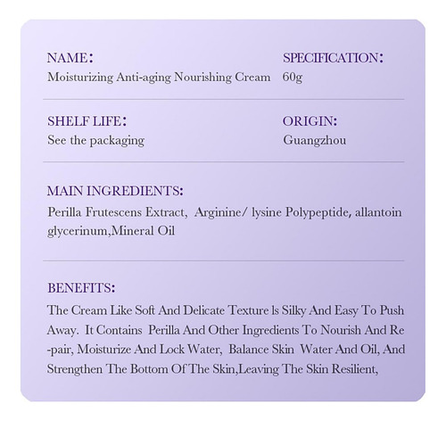 Hidratante antienvelhecimento polipeptídeo BIOAQUA Perilla, textura suave e delicada, 60 g/2,1 fl oz