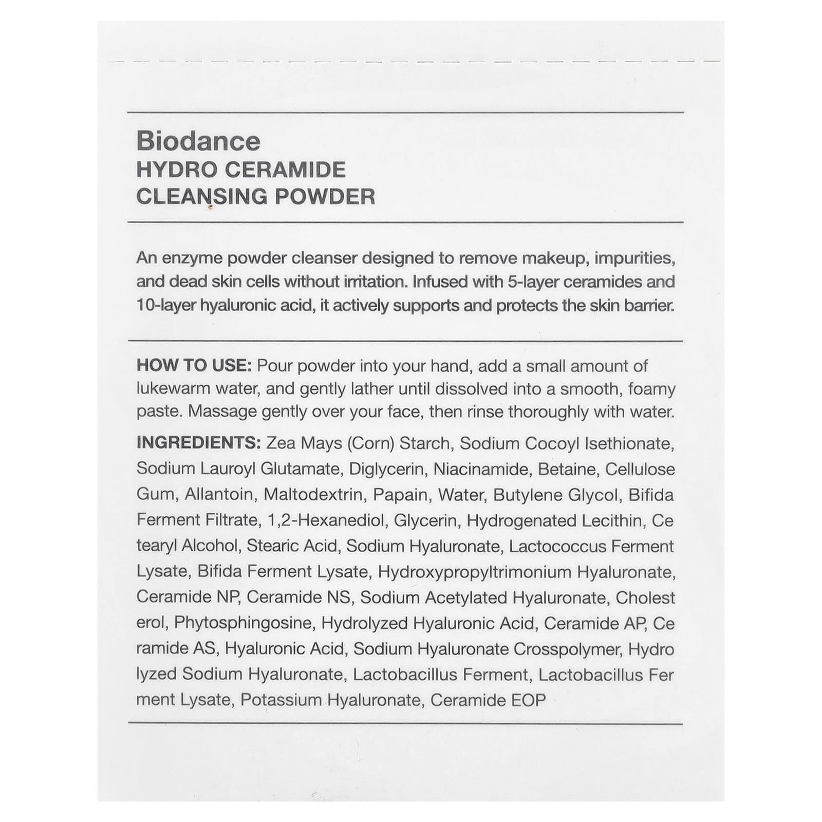 Biodance Pó de Limpeza Hydro Ceramide 30 Embalagens 1 g (003 oz) Cada – Biodance Beleza Limpeza Facial Esfoliantes Faciais Beleza por Ingrediente Cuidado para a pele com niacinamida.