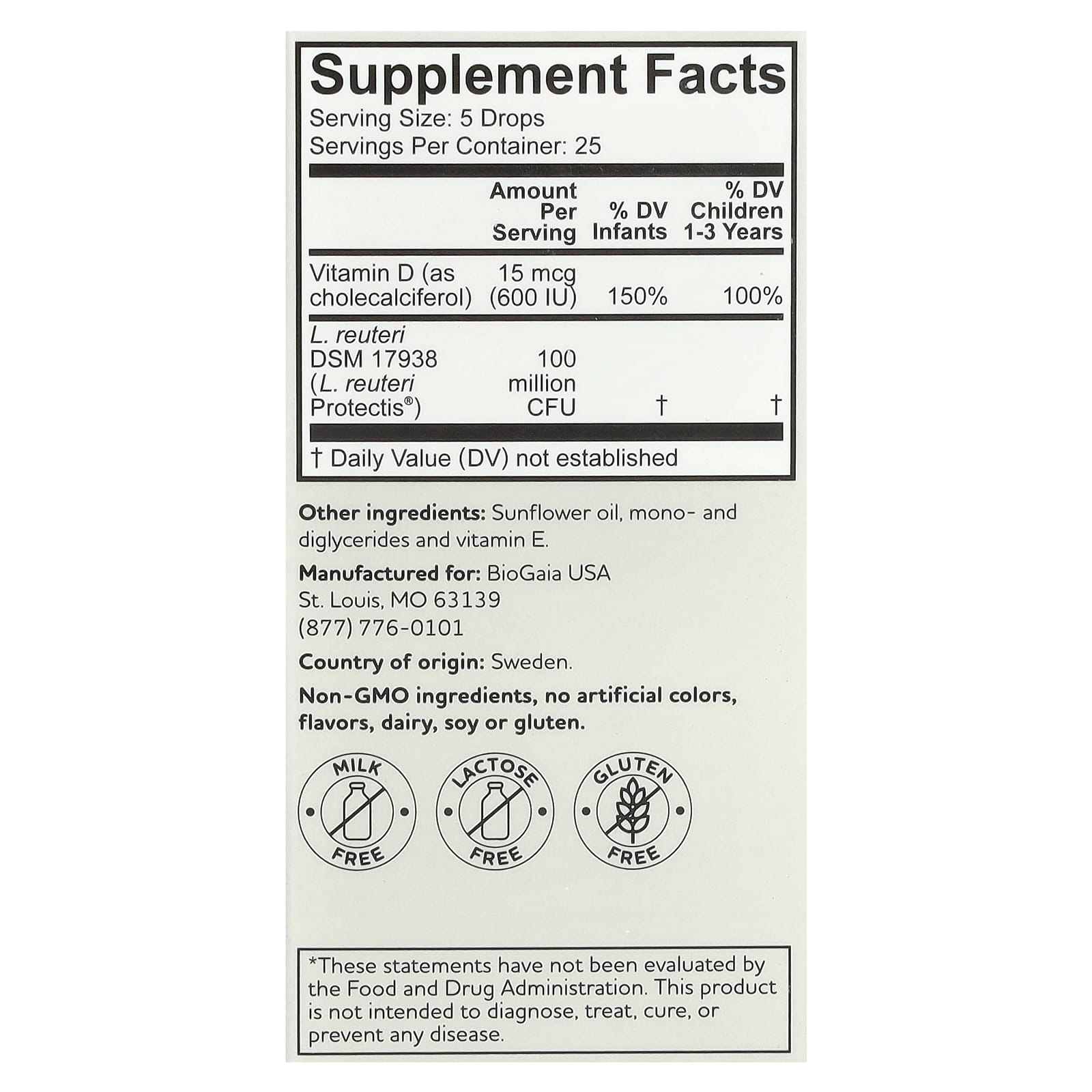 As gotas Protectis® da BioGaia® Immune Active é um suplemento alimentar que contém o probiótico patenteado Limosilactobacillus reuteri Protectis® (L. reuteri DSM 17938) e vitamina D3, que contribui para o funcionamento normal do sistema imunológico.