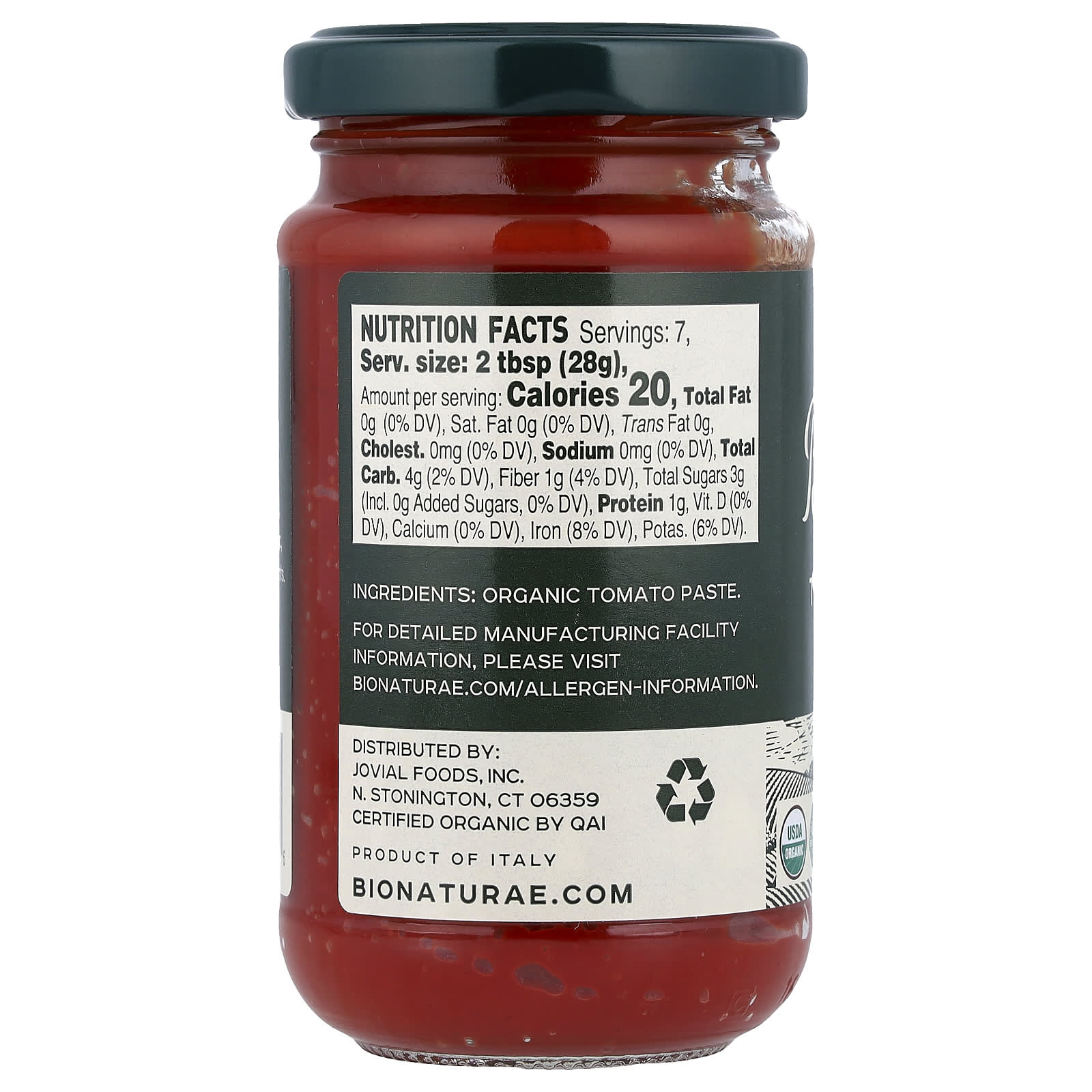 Bionaturae Pasta de Tomate Orgânico 200 g (7 oz) – Bionaturae Alimentos Condimentos, molhos e pastas Molhos e marinadas Molho de tomate e para massas.