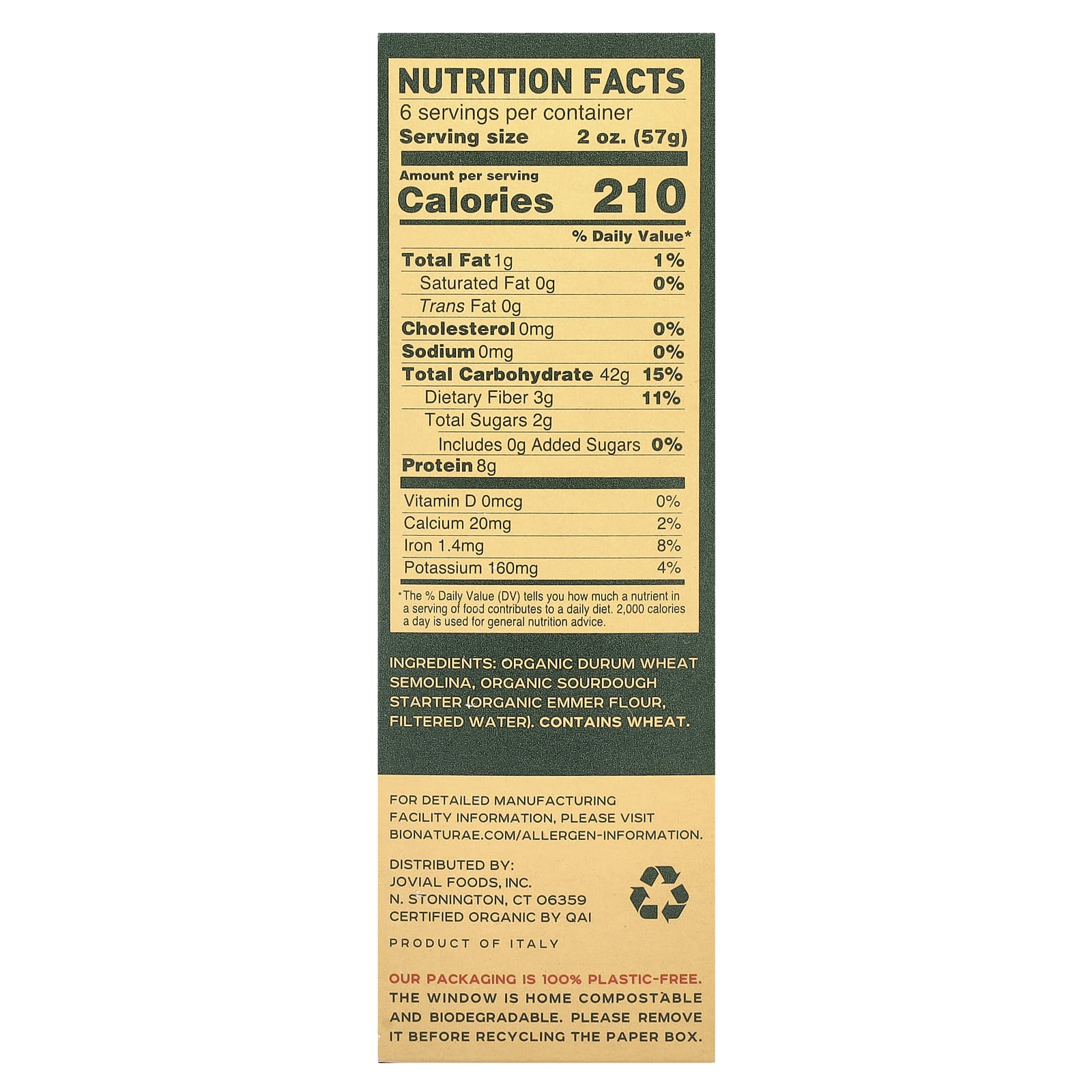 Organic durum wheat semolina, organic sourdough starter (organic emmer flour, filtered water).