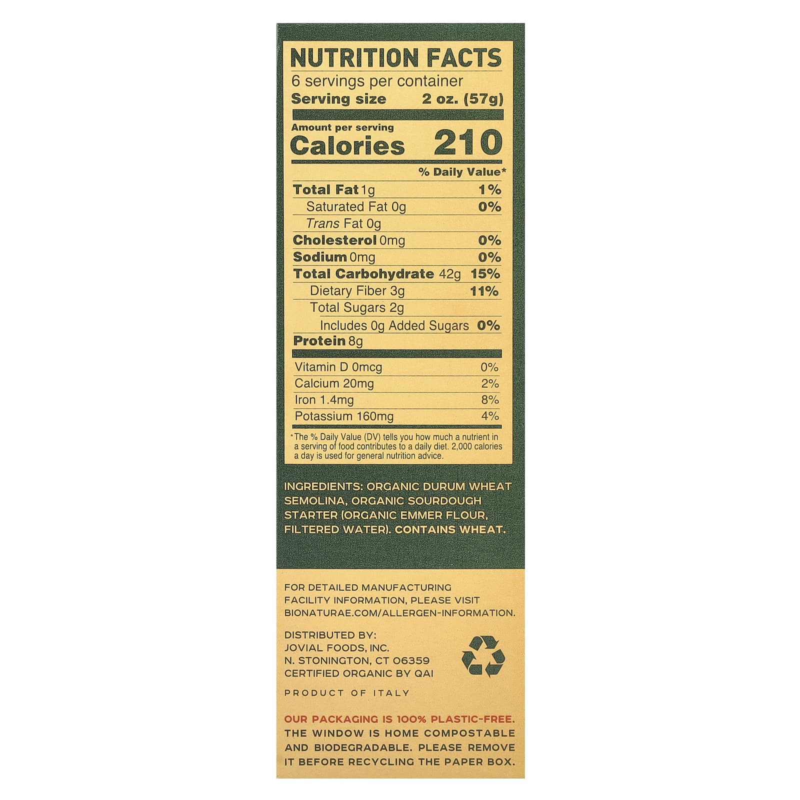Organic durum wheat semolina, organic sourdough starter (organic emmer flour, filtered water).