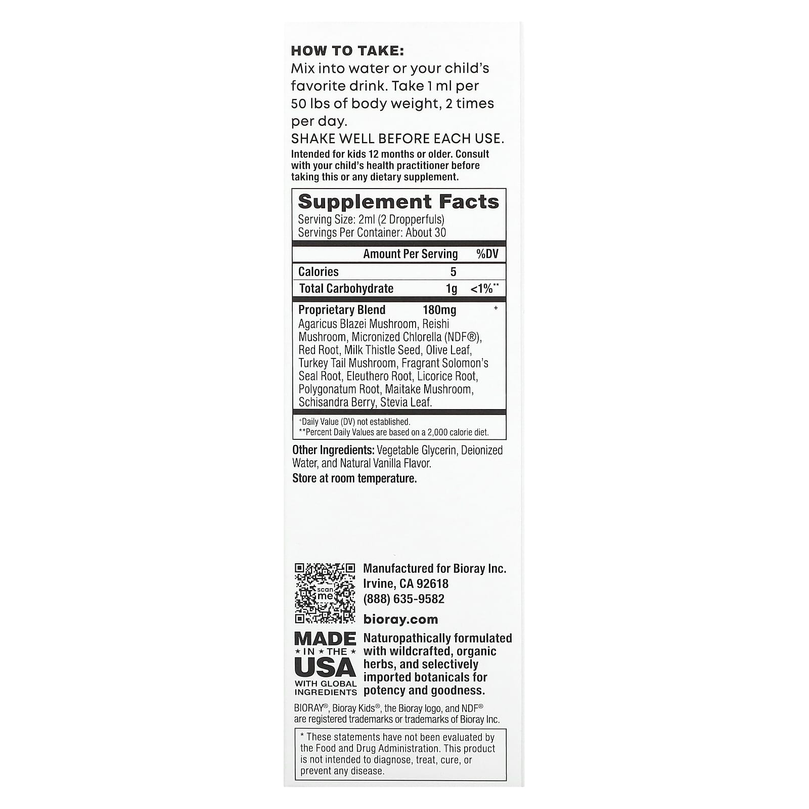 Bioray NDF Calm Nutre o Fígado e Remove Toxinas Infantil Sabor de Baunilha 60 ml (2 fl oz)