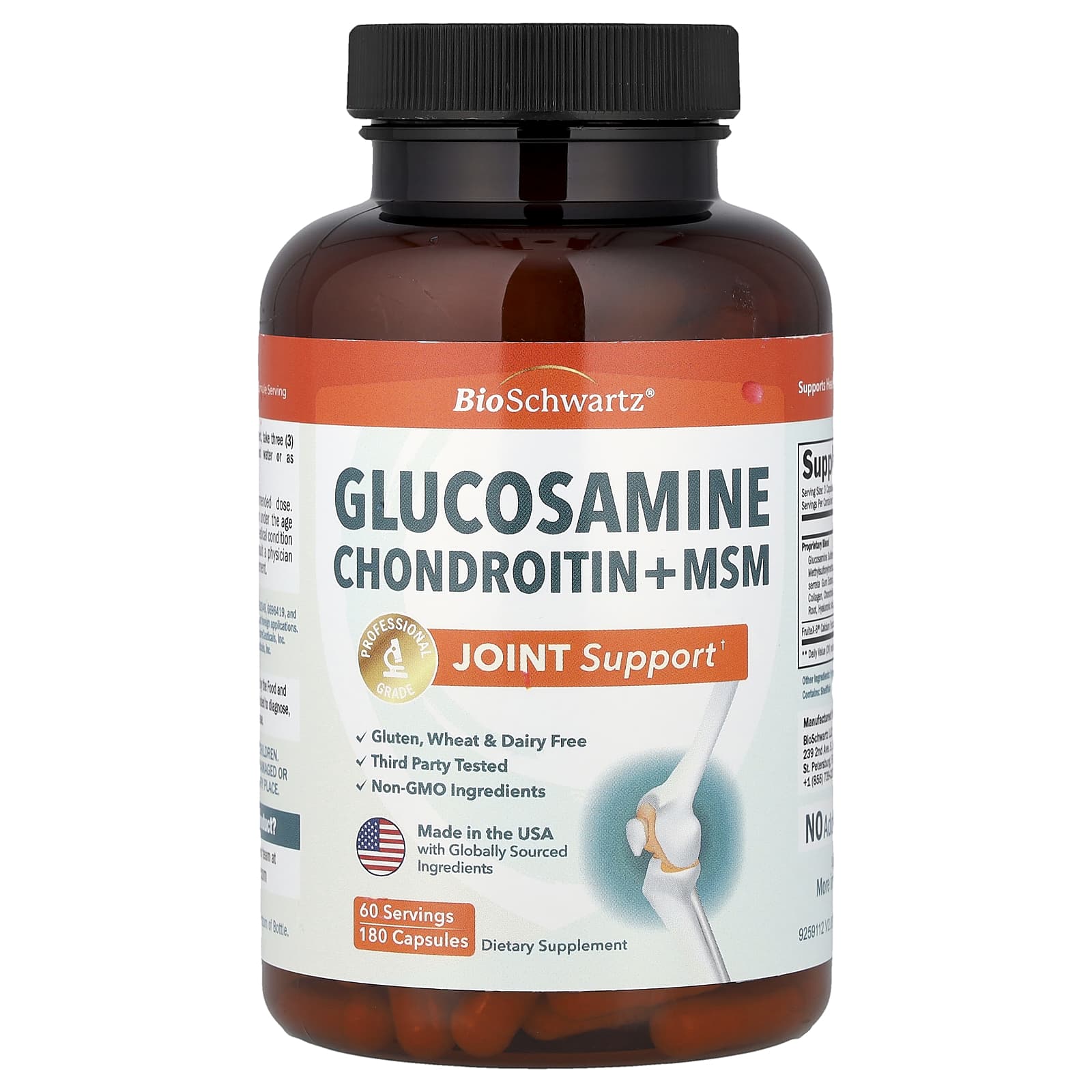 BioSchwartz Glicosamina Condroitina e MSM 180 Cápsulas – BioSchwartz Suplementos Ossos, Articulações e Cartilagem Fórmulas de Glucosamina MSM.