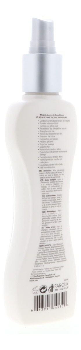 TERAPIA DE SEDA 17 DEIXAR EM CONDICIONADOR SPRAY 5.6 OZ Designer: Biosilk Marca: BIOSILK Gênero: UNISEX