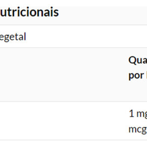 5. Outros Ingredientes: Farinha de Arroz, Hipromelose (cápsula de celulose), Palmitato de Ascorbila e Dióxido de Silício. Não é fabricado com ingredientes de trigo, glúten, soja, leite, ovo, peixe, marisco, nozes ou gergelim. Produto importado dos EUA e disponível a pronta entrega. VALIDADE LONGA
