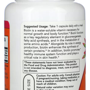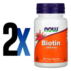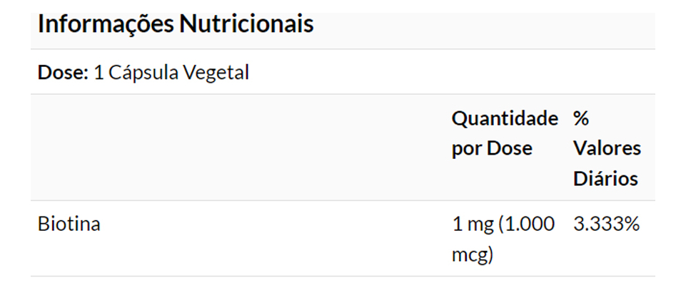 1. Juntamente com o seu papel na produção de energia, a biotina aumenta o síntese de certas proteínas.* Além disso, a biotina promove o funcionamento saudável do sistema imunológico e desempenha um papel crítico no bem-estar da pele. Cada embalagem contém 100 cápsulas vegetais, com 1000mcg de Biotina por cápsula.