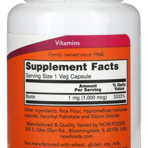 Biotina Now Foods 1000mcg 100 Veg Caps Produto Importado