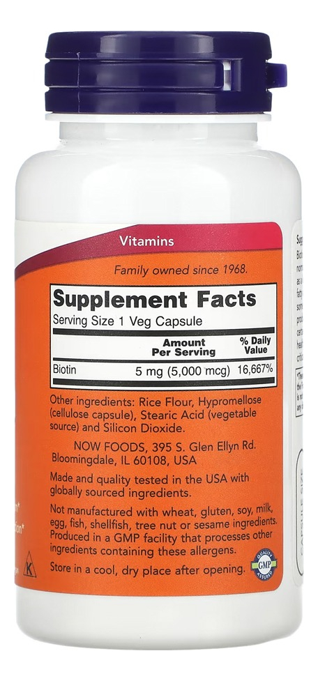 Biotina 5000mcg Now Foods 60 Veg Caps – Importado