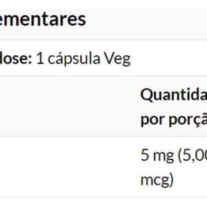 Outros Ingredientes: Farinha de Arroz, Hipromelose (cápsula de celulose), Ácido Esteárico (fonte vegetal) e Dióxido de Silício. Fabricado sem ingredientes de trigo, glúten, soja, leite, ovo, peixe, marisco, nozes ou gergelim. Tome 1 cápsula por dia com uma refeição.