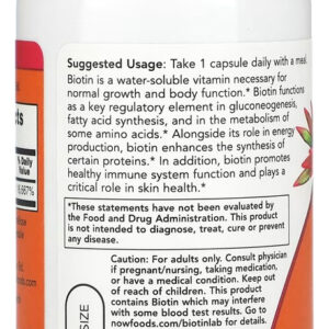 A Biotina 5000mcg da Now Foods é um poderoso suplemento nutricional que fornece uma dose concentrada desta vitamina essencial do complexo B em cada cápsula;