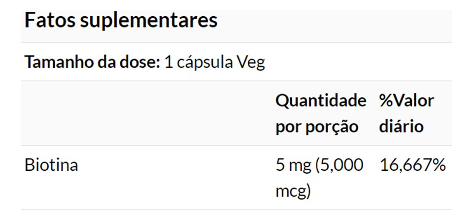 A biotina auxilia na manutenção do metabolismo energético para o bem-estar, desempenhando um papel fundamental no suporte a diversas funções metabólicas do corpo e apoia cabelo,pele e unhas fortes;