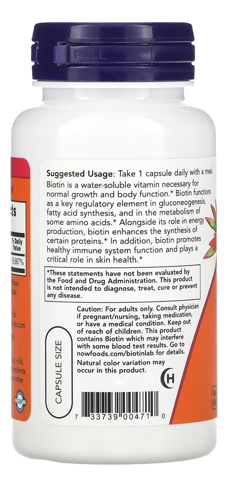 Biotina 5000mcg Now Foods 60 Cáps + Porta Cápsulas