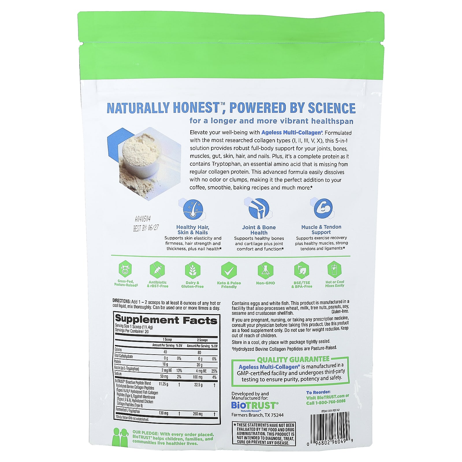 BioTRUST Ageless Multi-Collagen® Sem Sabor 228 g (804 oz) – BioTRUST Suplementos Ossos, Articulações e Cartilagem Colágeno, Suplementos.