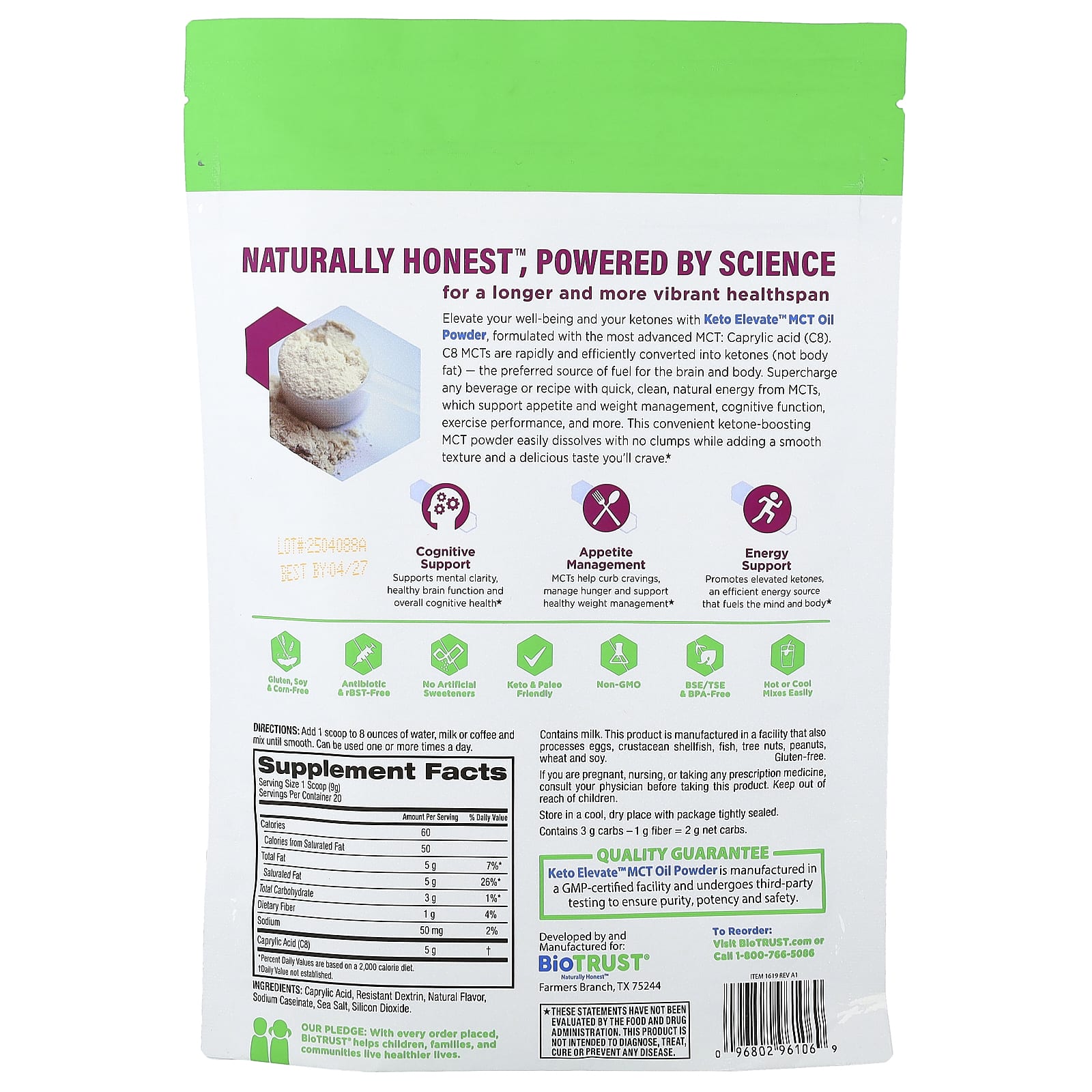 BioTRUST Keto Elevate™ Óleo TCM em Pó Sem Sabor 180 g (635 oz) – BioTRUST Suplementos Controle de peso Óleo de TCM e Ácido Caprílico.