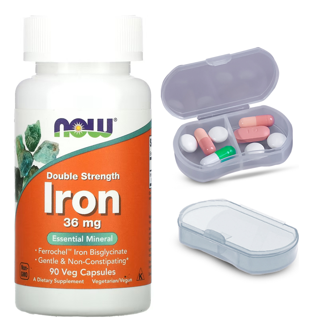 Kit Bisglicinato de Ferro 36mg Now Foods 90Cáps + Porta Cápsulas Fonte Eficiente de Ferro: O Bisglicinato de Ferro da Now Foods oferece 36mg de ferro por cápsula, uma forma altamente eficiente e facilmente absorvível. Ideal para aqueles que buscam complementar sua ingestão de ferro de maneira eficaz. Cápsulas Vegetais de Alta Qualidade: Contendo 90 cápsulas vegetais, este suplemento é uma escolha conveniente e respeitosa com o meio ambiente. As cápsulas são fáceis de engolir e adequadas para vegetarianos, proporcionando uma opção inclusiva para diferentes estilos de vida. Qualidade Internacional e Disponibilidade Imediata: Importado, este produto assegura a qualidade e confiabilidade da Now Foods. Com pronta entrega disponível, você pode contar com a rapidez e a conveniência de acessar um suplemento internacional de alta qualidade. Porta Cápsulas com Duas Repartições: O kit também inclui um porta-cápsulas prático, dividido em duas seções internas. Isso permite uma organização eficaz e separada de diferentes tipos de cápsulas ou pílulas. Composição Focada e Pura: Cada cápsula contém Bisglicinato de Ferro, uma forma de ferro altamente absorvível, sem aditivos ou ingredientes desnecessários. Este suplemento é projetado para fornecer apenas o que é essencial, mantendo a pureza e a eficácia do ingrediente ativo. VALIDADE LONGA