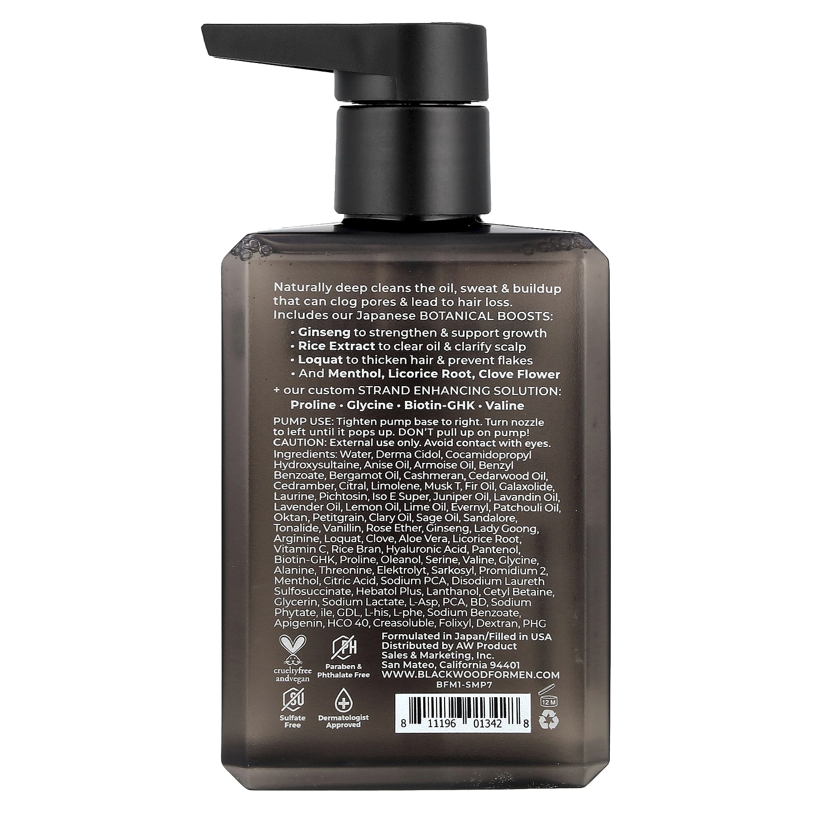Água, derma cidol, cocamidopropyl hydroxysultaine, óleo de anis, óleo de amora, benzoato de benzila, óleo de bergamota, caxemira, óleo de cedro, cedro, citral, limoleno, almíscar, óleo de abeto, galaxolide, laurine, pictosina, iso e super, óleo de zimbro, óleo de lavandina, óleo de lavanda, óleo de limão, óleo de limão, Evernyl, óleo de patchuli, Okaytan, petitgrain, óleo sálvia, óleo de sálvia, Sandalore, tonalídeo, vanilina, éter rosa, ginseng, Lady Goong, arginina, nêspera, cravo, babosa, raiz de alcaçuz, vitamina C, farelo de arroz, ácido hialurônico, pantenol, biotina-ghk, prolina, oleanol, serina, valina, glicina, alanina, treonina, eletrólito, sarkosyl, promidium 2, mentol, ácido cítrico, pidolato de sódio, disodium laureth sulfosuccinate, hebatol plus, lantanol, cetilbetaína, glicerina, lactato de sódio, l-asp, pca, bd, fitato de sódio, ile, gdl, l-his, l-pho, benzoato de sódio, apigenina, hco 40, creasoluble, folixil, dextrano, phg.