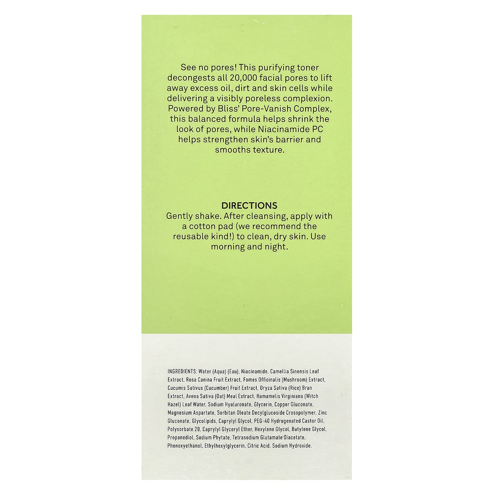 Bliss Tônico Purificante com Nicotinamida Disappearing Act 295 ml (10 fl oz) – Bliss Beleza Limpeza Facial Loções tônicas Beleza por Ingrediente Cuidado para a pele com niacinamida.