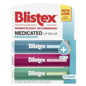 Blistex Balm Labial Medicinal FPS 15 Menta Frutos Silvestres Clássico 3 Unidades 425 g (015 oz) Cada – Blistex Cuidados Pessoais Lábios Bálsamo Labial.
