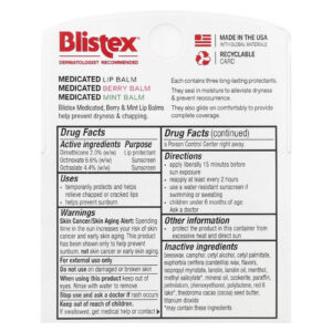 Os Balms Labiais de Menta, Frutos Silvestres e Frutos Silvestres da Blistex Medicated ajudam a prevenir o ressecamento e as rachaduras.