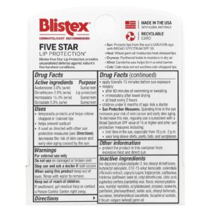 Blistex Five Star Lip Protection® Protetor Labial/Protetor Solar FPS 30 425 g (015 oz) – Blistex Cuidados Pessoais Lábios Bálsamo Labial Protetor Labial com FPS.