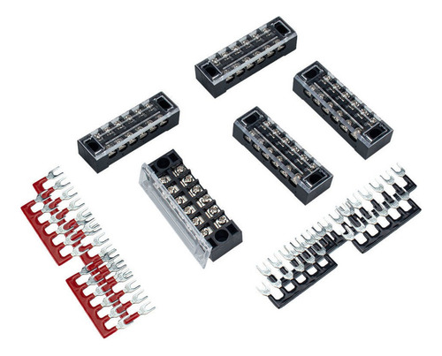 5 blocos terminais dos pces 5 tiras de jumper de barreira pré-isoladas vermelhas do bloco terminal 5 tiras de jumper de barreira pré-isoladas pretas do bloco terminal
