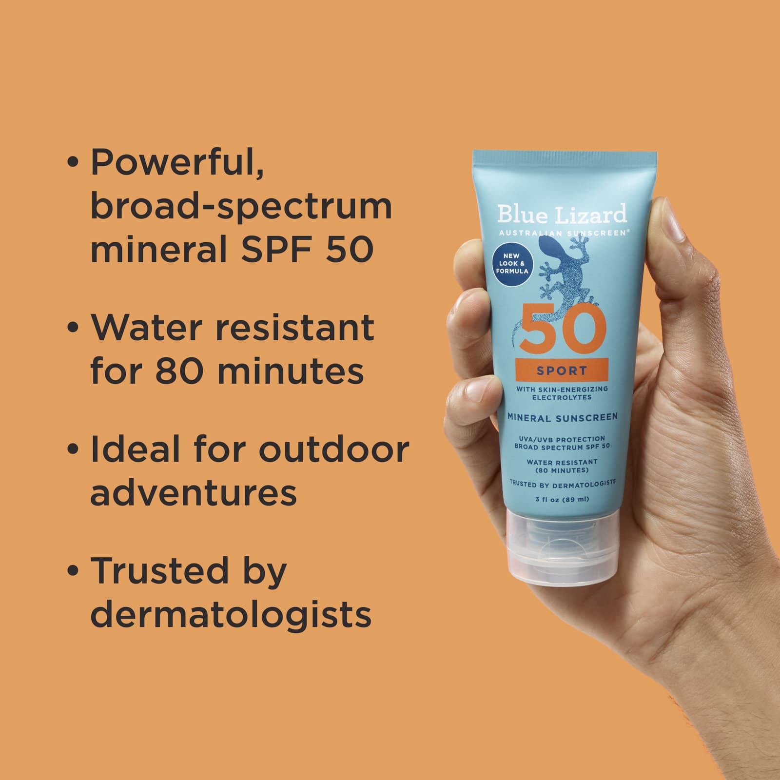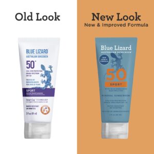 Blue Lizard Australian Sunscreen Protetor Solar Mineral para Esportes FPS 50 89 ml (3 fl oz) – Blue Lizard Australian Sunscreen Cuidados Pessoais Protetor Solar.