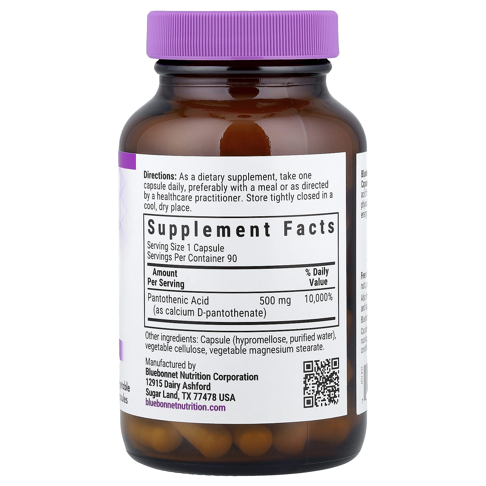 Bluebonnet Nutrition Ácido Pantotênico 500 mg 90 Cápsulas Vegetais – Bluebonnet Nutrition Suplementos Vitaminas Vitamina B Vitamina B5 (Ácido Pantotênico).