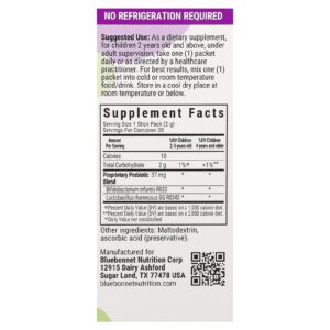 Os pacotes de Probióticos para Crianças da Bluebonnet são formulados com: