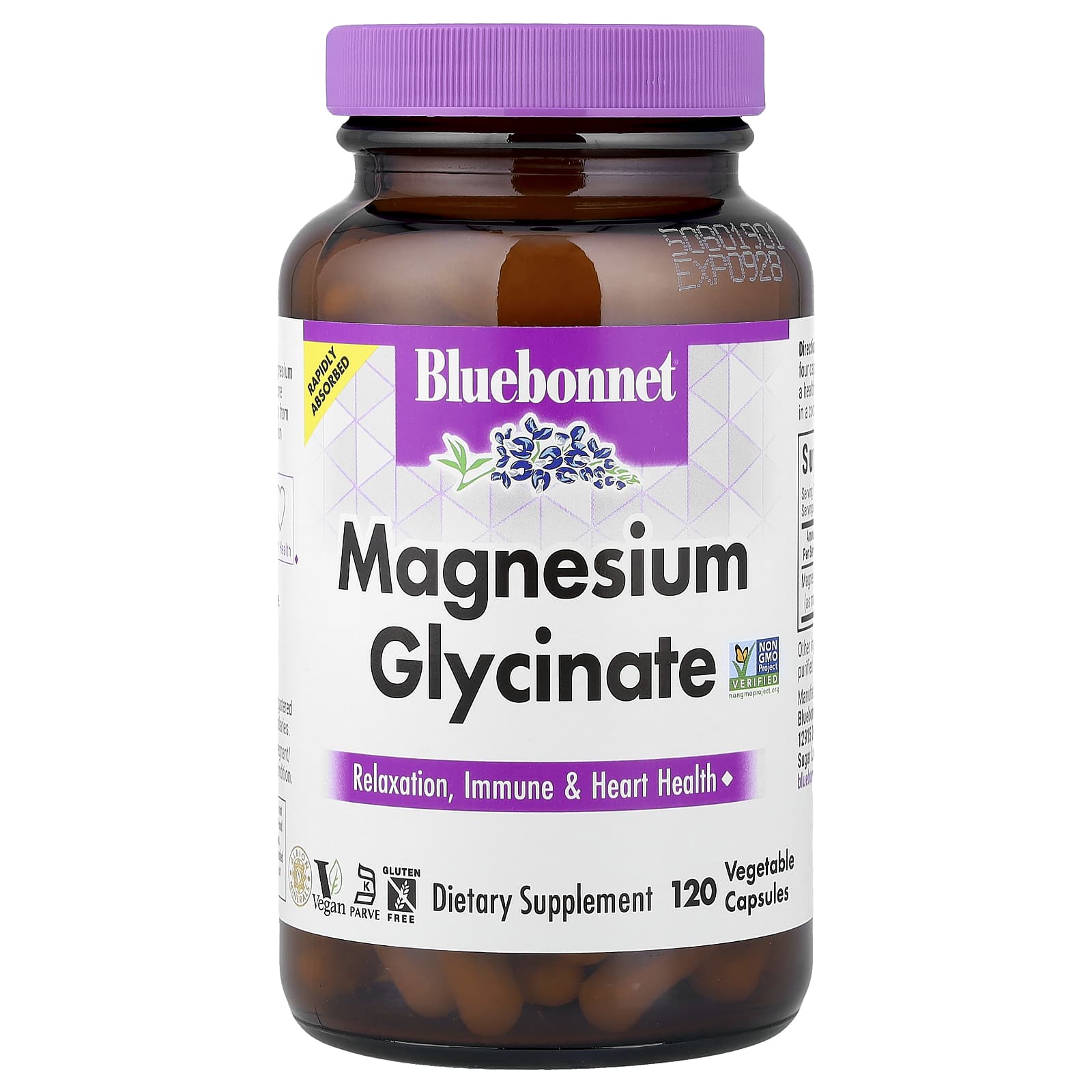 As Cápsulas Vegetais de Glicinato de Magnésio de 400 mg da Bluebonnet são formuladas com magnésio de glicinato de magnésio totalmente reagido, um complexo mineral de aminoácidos absorvido mais rapidamente da Albion. O magnésio contribui para a produção de energia e é fundamental para a função enzimática.