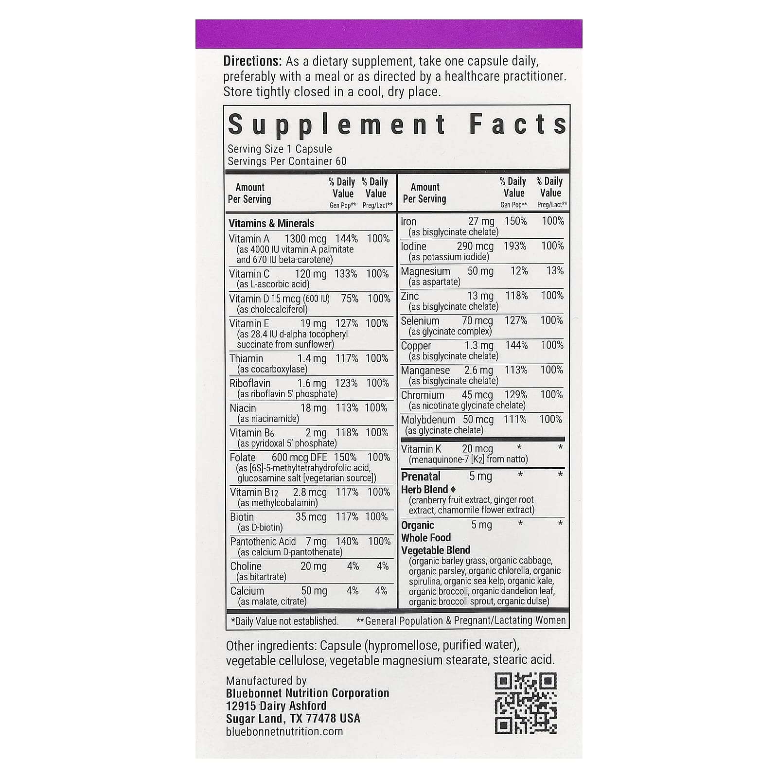 Bluebonnet Nutrition Ladys One® Pré-Natal 60 Cápsulas Vegetais