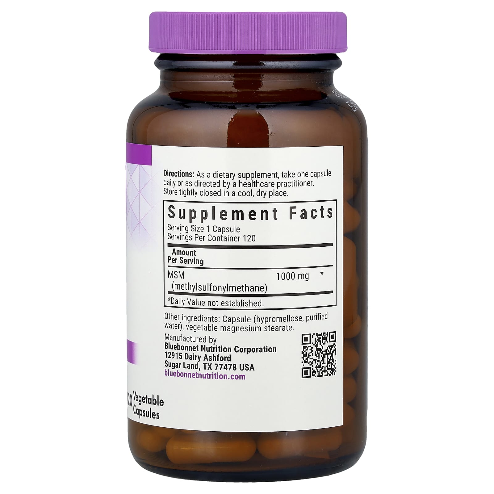 Bluebonnet Nutrition MSM 1000 mg 120 Cápsulas Vegetais – Bluebonnet Nutrition Suplementos Ossos, Articulações e Cartilagem MSM.