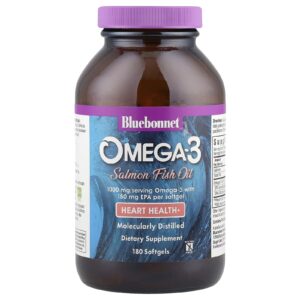 As Cápsulas Softgel de Óleo de Salmão Ômega-3 da Bluebonnet são formuladas com uma proporção específica de EPA e DHA para ajudar a manter a saúde cardíaca, o fluxo sanguíneo e a pressão sanguínea dentro da faixa normal, utilizando ômega-3 ultrarrefinado de óleo de peixe salmão.