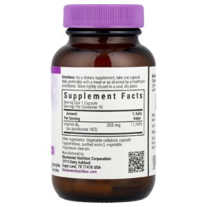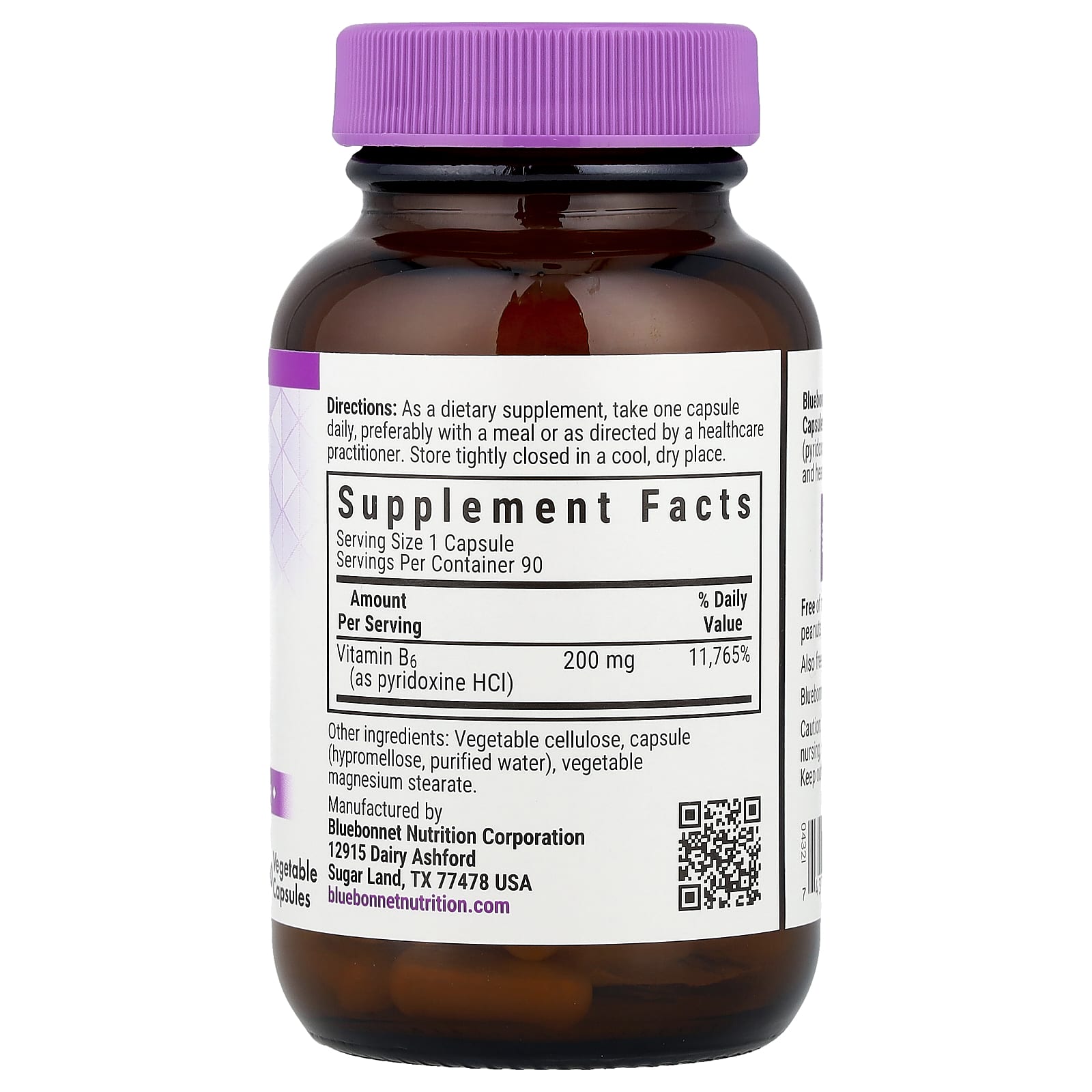 Bluebonnet Nutrition Vitamina B6 200 mg 90 Cápsulas Vegetais – Bluebonnet Nutrition Suplementos Vitaminas Vitamina B Vitamina B6 (Piridoxina).