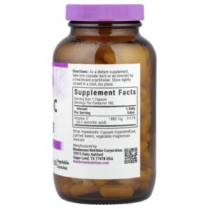 Bluebonnet Nutrition Vitamina C 1.000 mg 180 Cápsulas Vegetais – Bluebonnet Nutrition Suplementos Vitaminas Vitamina C Ácido ascórbico Saúde Gripe e Resfriado.