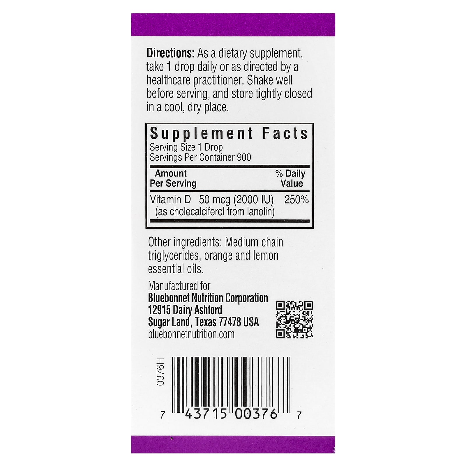 Bluebonnet Nutrition Vitamina D3 Líquida em Gotas Cítrico 50 mcg (2.000 UI) 30 ml (1 fl oz) – Bluebonnet Nutrition Suplementos Vitaminas Vitamina D.