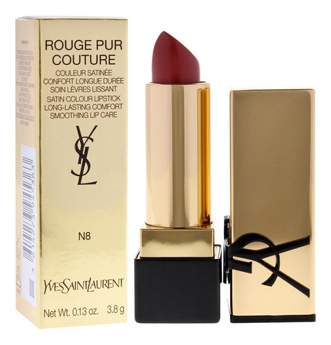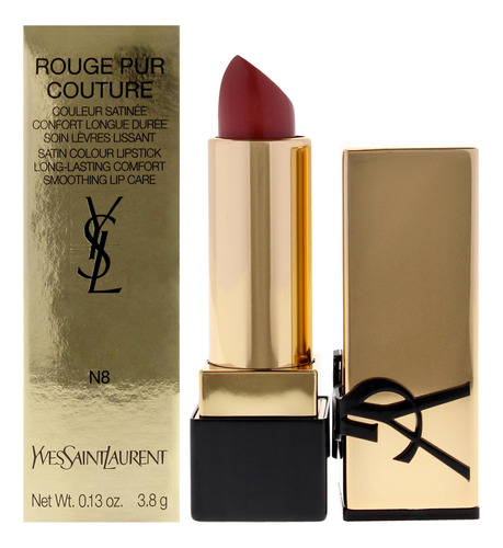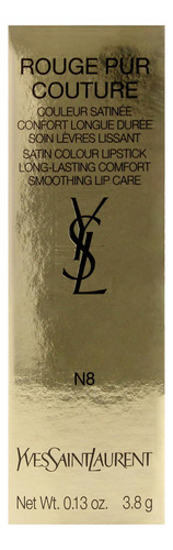 Batom acetinado Yves Saint Laurent Rouge Pur Couture — Blusa N8 Nu para mulheres — Batom de 0,13 onças — Um