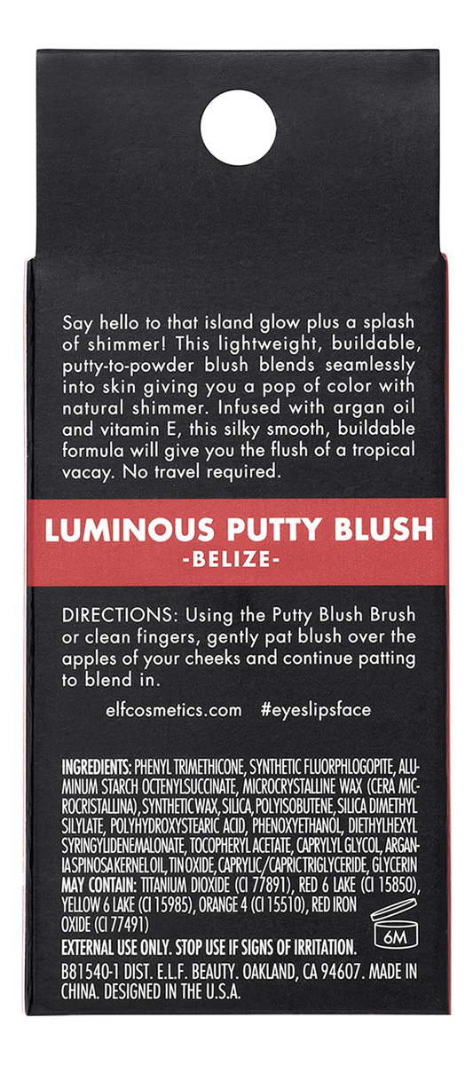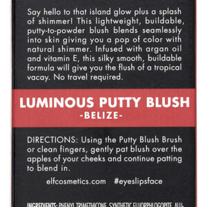 e.l.f. Luminous Putty Blush, massa a pó, blush montável com um acabamento sutil de brilho, altamente pigmentado e cremoso, vegano e livre de crueldade, Belize — BLUSH FOR LUMINOUS GLOW: brilhe com seu Putty Blush favorito, agora disponível em seis novos tons com um acabamento brilhante sutil! – FÓRMULA MONTÁVEL E MISTURÁVEL: leve, montável e altamente pigmentado, esse blush exclusivo de massa a pó se mistura perfeitamente e derrete na pele, dando às bochechas um lindo toque de cor e brilho direto. – INFUNDIDO COM VITAMINA E: infundido com óleo de argan e vitamina E para aumentar a hidratação. – DICA DE BELEZA: use com nosso pincel Putty Blush para obter um toque fácil e perfeito sem aplicação. – INGREDIENTES QUE ADORAM A PELE: Todos os produtos da E.L.F. são feitos com os ingredientes que você deseja, menos as toxinas que você vende a preços acessíveis. Todos os produtos da e.l.f. são 100% veganos, livres de crueldade e certificados pela Leaping Bunny.