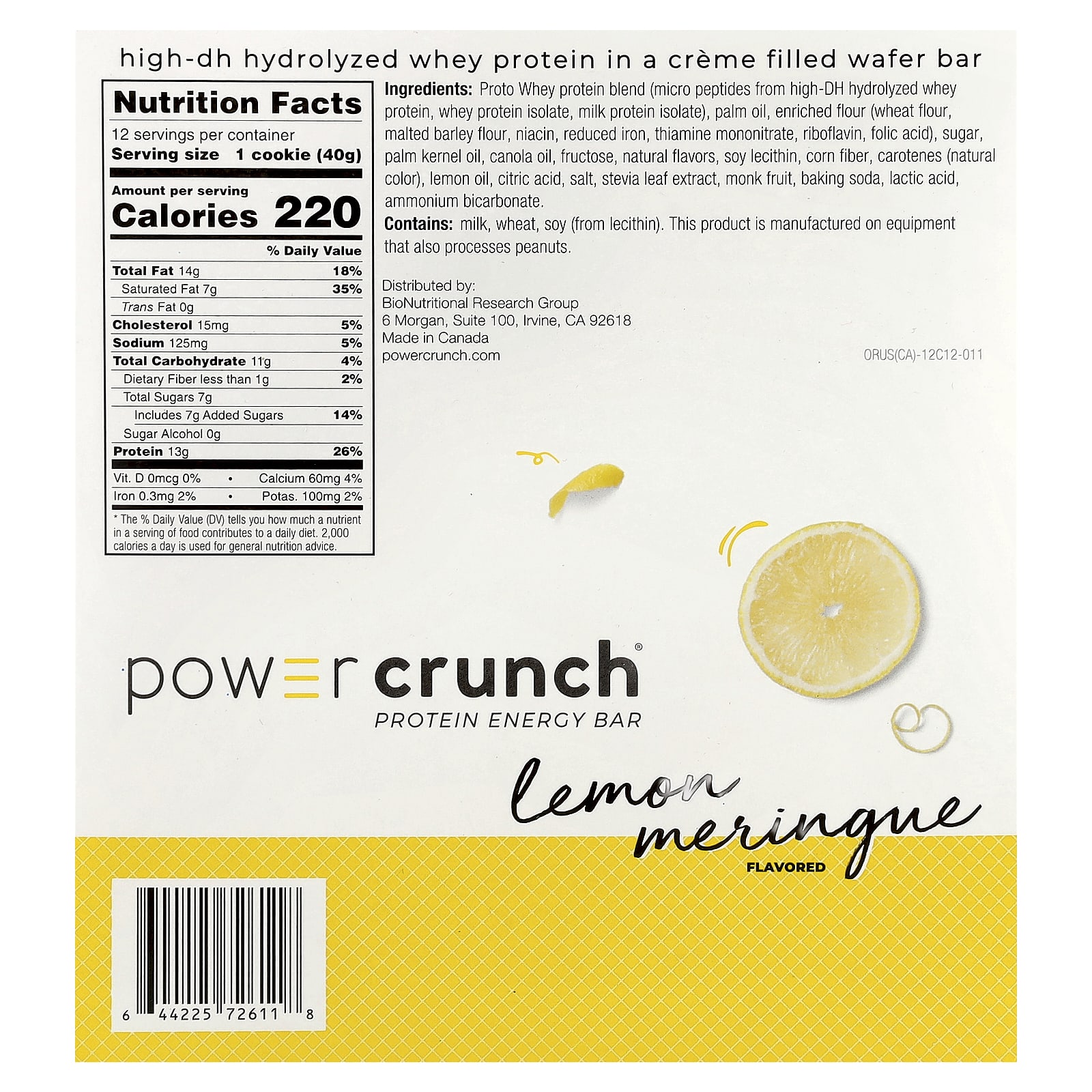 BNRG Power Crunch Protein Energy Bar Merengue de Limão 12 Barras 40 g (14 oz) Cada – BNRG Nutrição Esportiva Barrinhas e snacks esportivos Barras de Proteína Barras de Proteína de Whey Barrinhas energéticas.