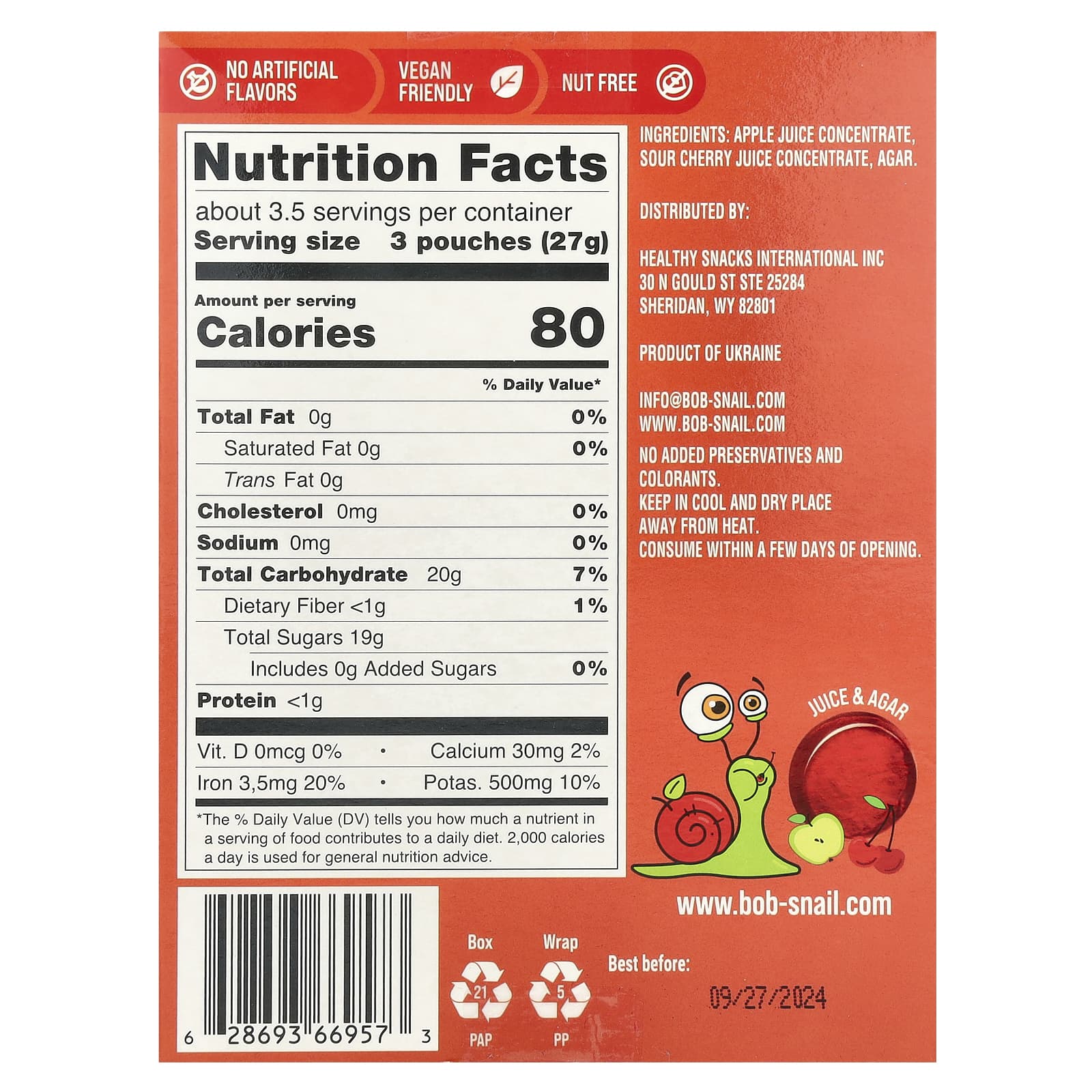Bob Snail Geleia de Frutas Maçã-Cereja Azeda 10 Unidades 90 g – Bob Snail Alimentos Petiscos e lanches Snacks de frutas e vegetais.