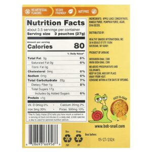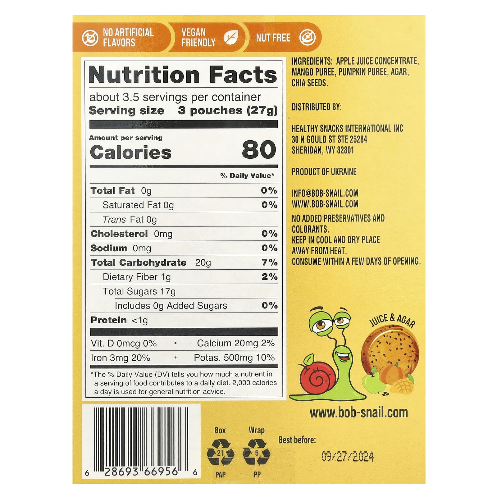 Bob Snail Lanche de Goma de Frutas Maçã-Manga-Abóbora-Chia 10 Unidades 9 g (032 oz) Cada – Bob Snail Alimentos Petiscos e lanches Snacks de frutas e vegetais.