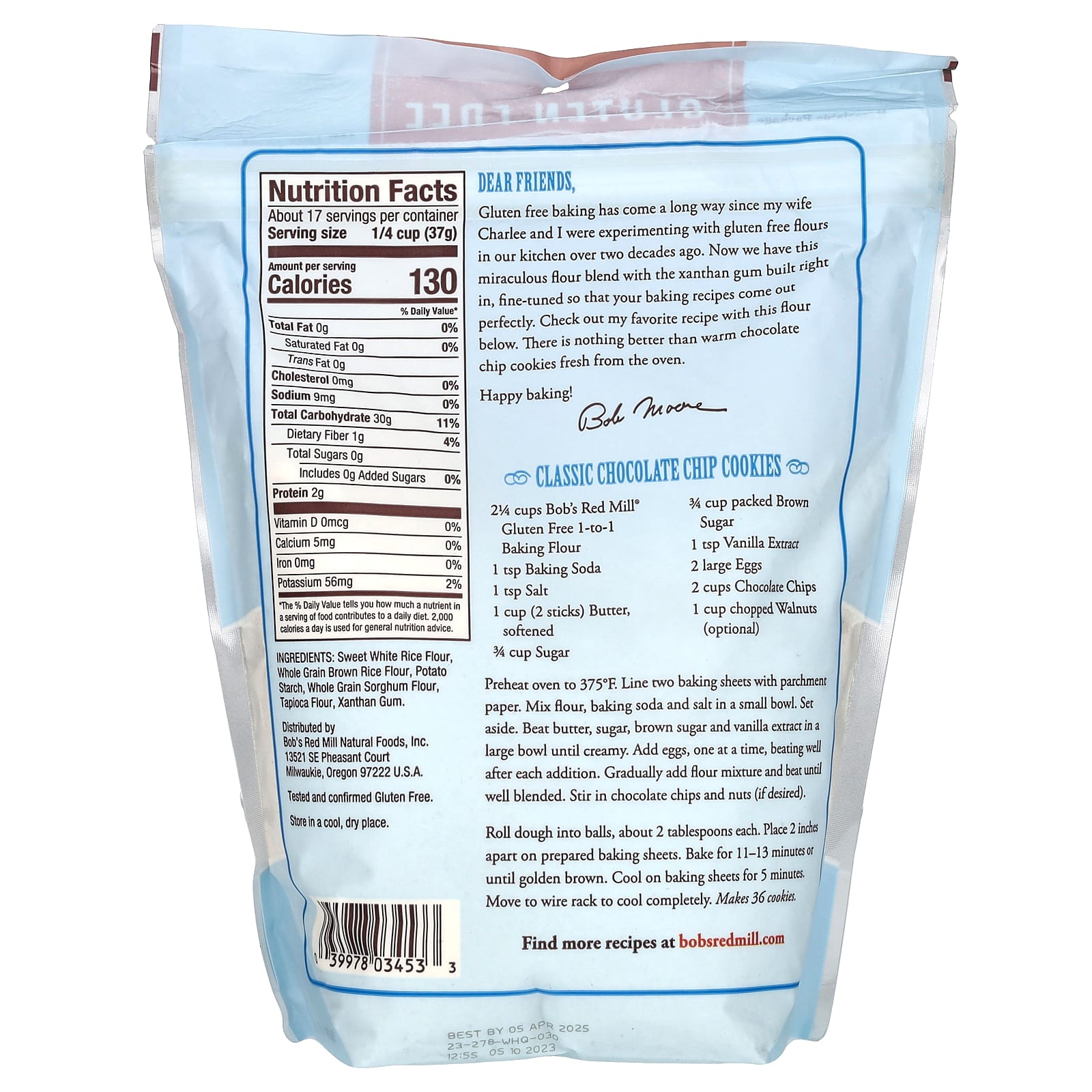 Bobs Red Mill 1 to 1 Baking Flour Farinha Sem Glúten 22 oz (624 g) – Bob’s Red Mill Alimentos Fermentos, farinhas e misturas.